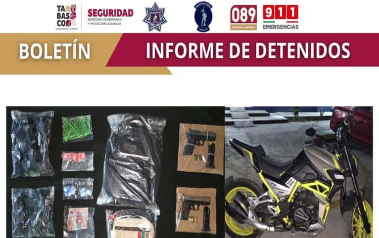 - Llevaron a cabo la detención de dos personas por su probable responsabilidad en delitos contra la Ley General de Salud, así como por la portación de armas de fuego.