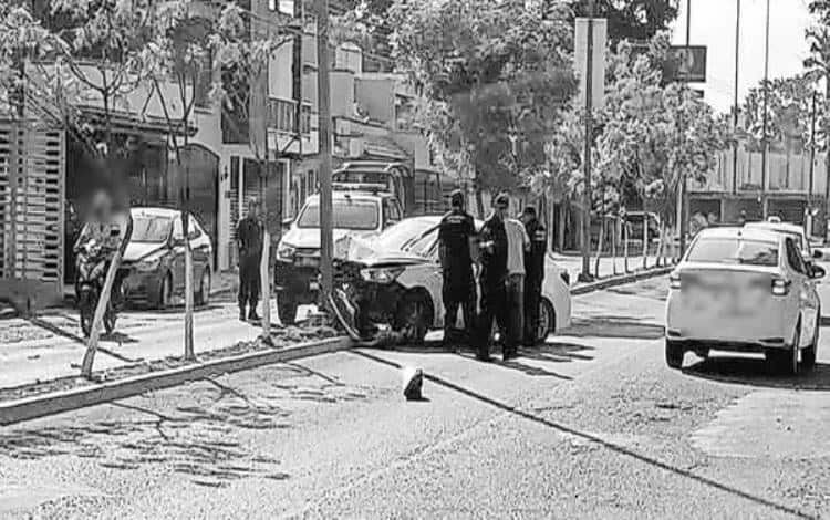 Un fuerte accidente vial registrado sobre el boulevard Gilberto García Sánchez dejó como saldo una pareja lesionada y cuantiosos daños materiales, tanto a un automóvil como a un poste de alumbrado público.
