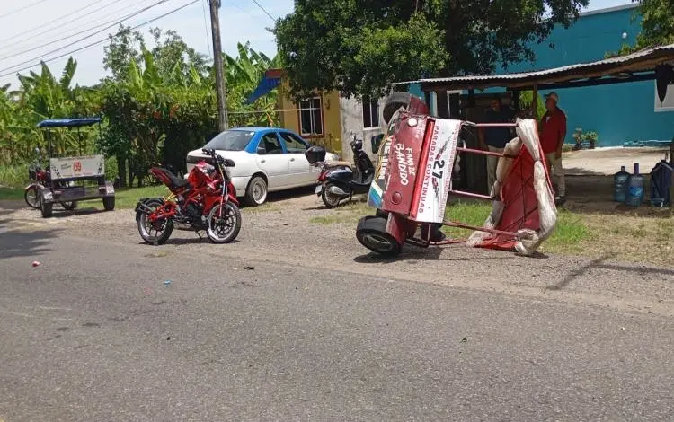 "Mujer resulta lesionada tras choque entre motocicleta y pochimóvil en Río Tinto.
