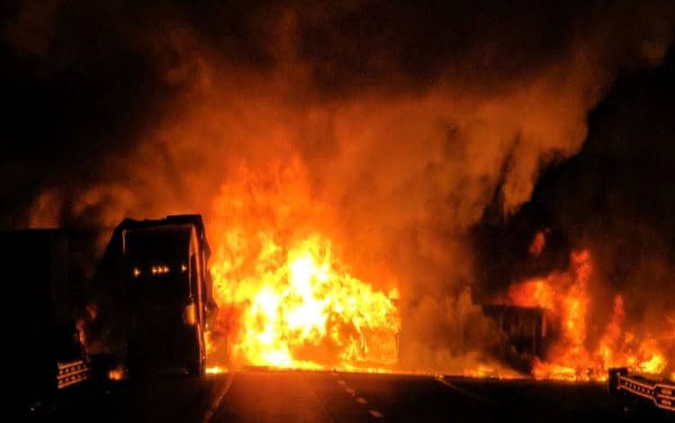 Como consecuencia de la maniobra del conductor de la pipa, uno de los remolques volcó e inmediatamente se incendió. En ese mismo momento, una camioneta de redilas que circulaba por la zona terminó impactándose contra la pipa atravesada. A pesar de la magnitud del accidente, no se reportaron personas heridas de gravedad.