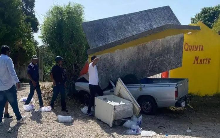 - El percance ocurrió alrededor de las 9:00 horas, vecinos de la zona, alertados por el estruendo del choque, fueron los primeros en acudir al lugar, donde se encontraron con la lamentable escena; la camioneta había quedado debajo de una pesada estructura de concreto que formaba parte del acceso a la finca. En su interior, el conductor se encontraba atrapado entre los fierros.