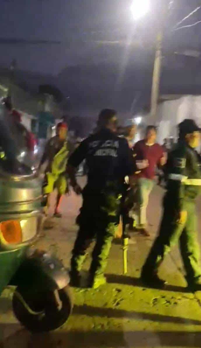 Congregándose pobladores de Villa Aldama y comunidades cercanas, encarando y cercando a los agentes de tránsito a la vez que exigían la liberación de las motos incautadas.