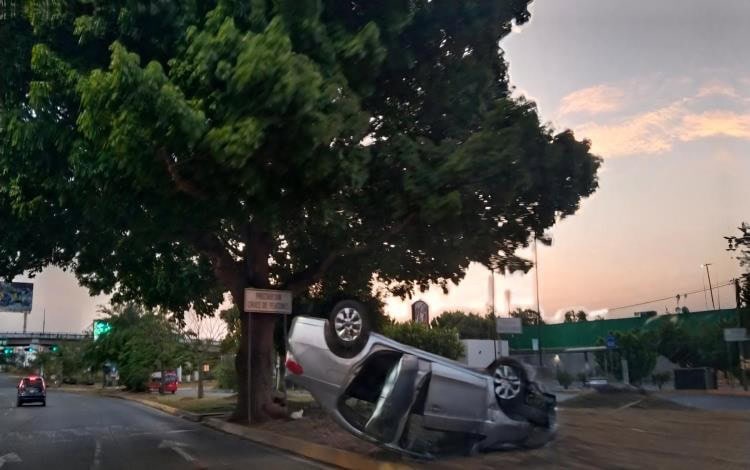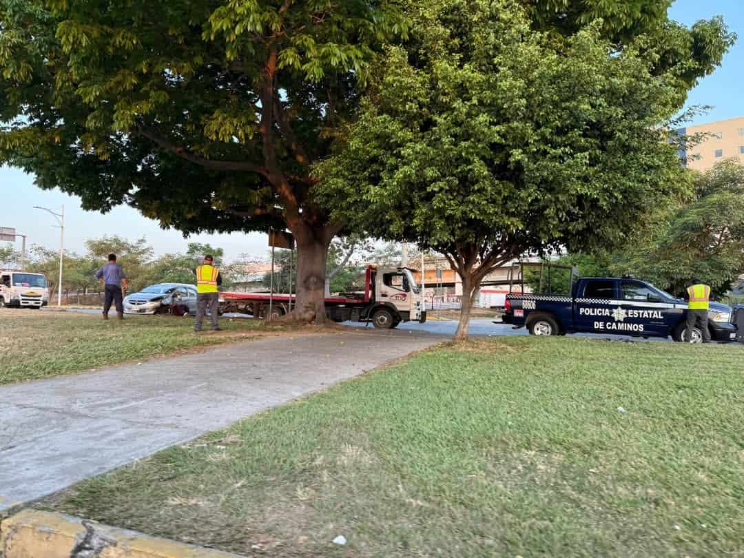 Acelerado conductor de un vehículo particular color gris se accidentó alrededor de las 6 de la mañana de este domingo en la Avenida Universidad a metros del Periférico de Villahermosa antes de llegar al distribuidor vial La Pigua.