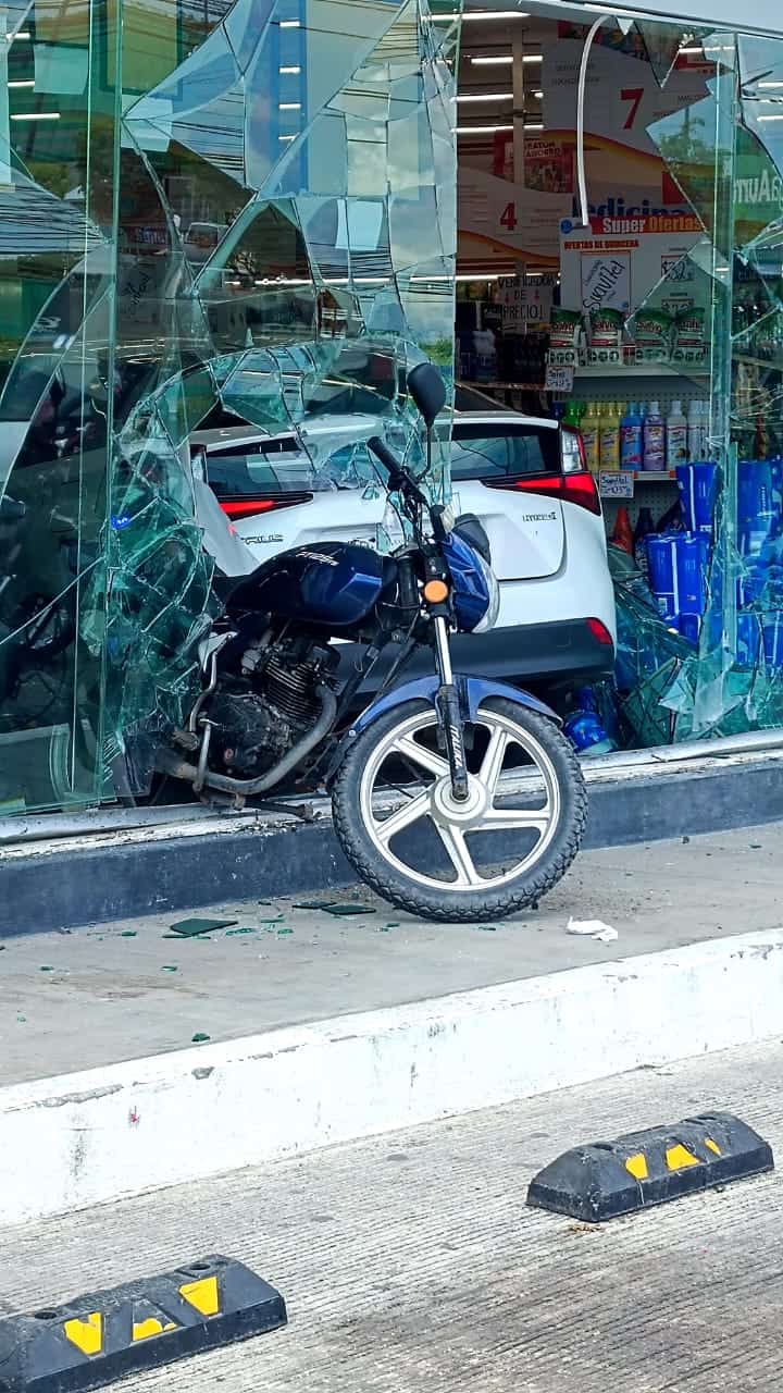 El impacto causó severos daños materiales tanto en el vehículo como en la motocicleta, así como importantes afectaciones a la infraestructura del inmueble. Entre los destrozos se encuentran vitrinas rotas, anaqueles derribados y mercancía dañada.