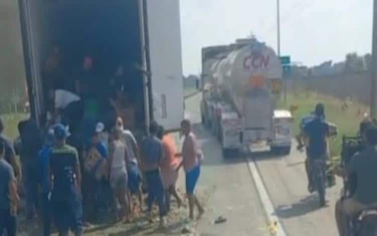 Pocos minutos después, vecinos de la zona y automovilistas que transitaban por el lugar detuvieron su marcha para realizar actos de rapiña, llevándose parte de la mercancía que transportaban los vehículos accidentados.