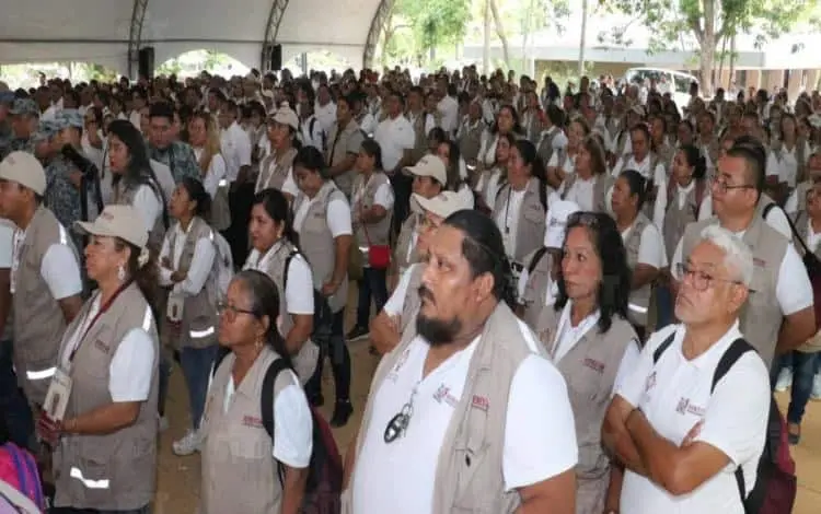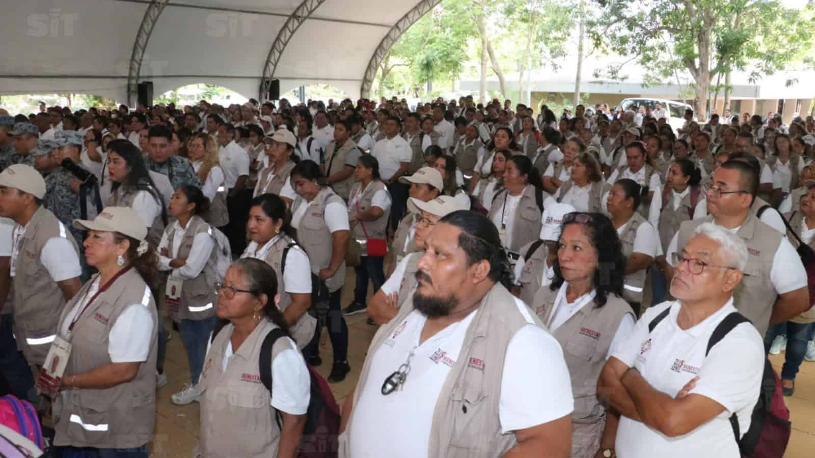Acompañado por la delegada Estatal de Programas para el Bienestar, Lorena Méndez Denis, y titulares de diversas dependencias, May Rodríguez reconoció el compromiso de los Servidores de la Nación provenientes de una vez áreas estatales e instituciones federales de seguridad.