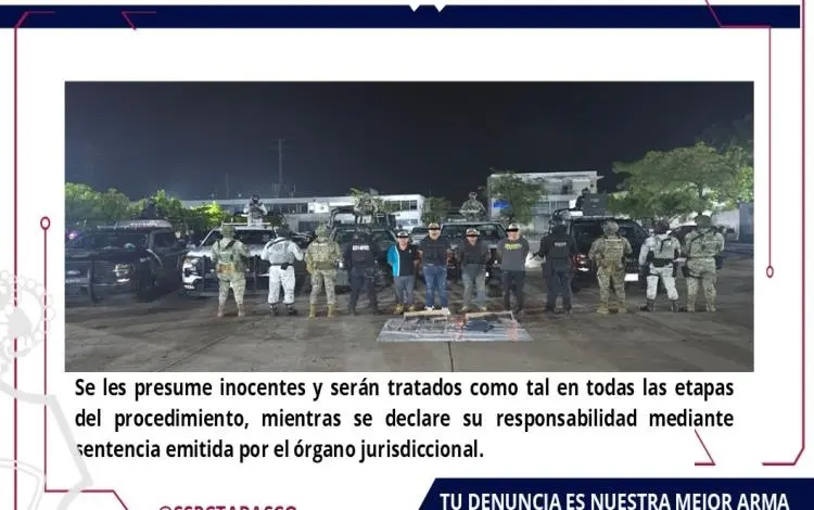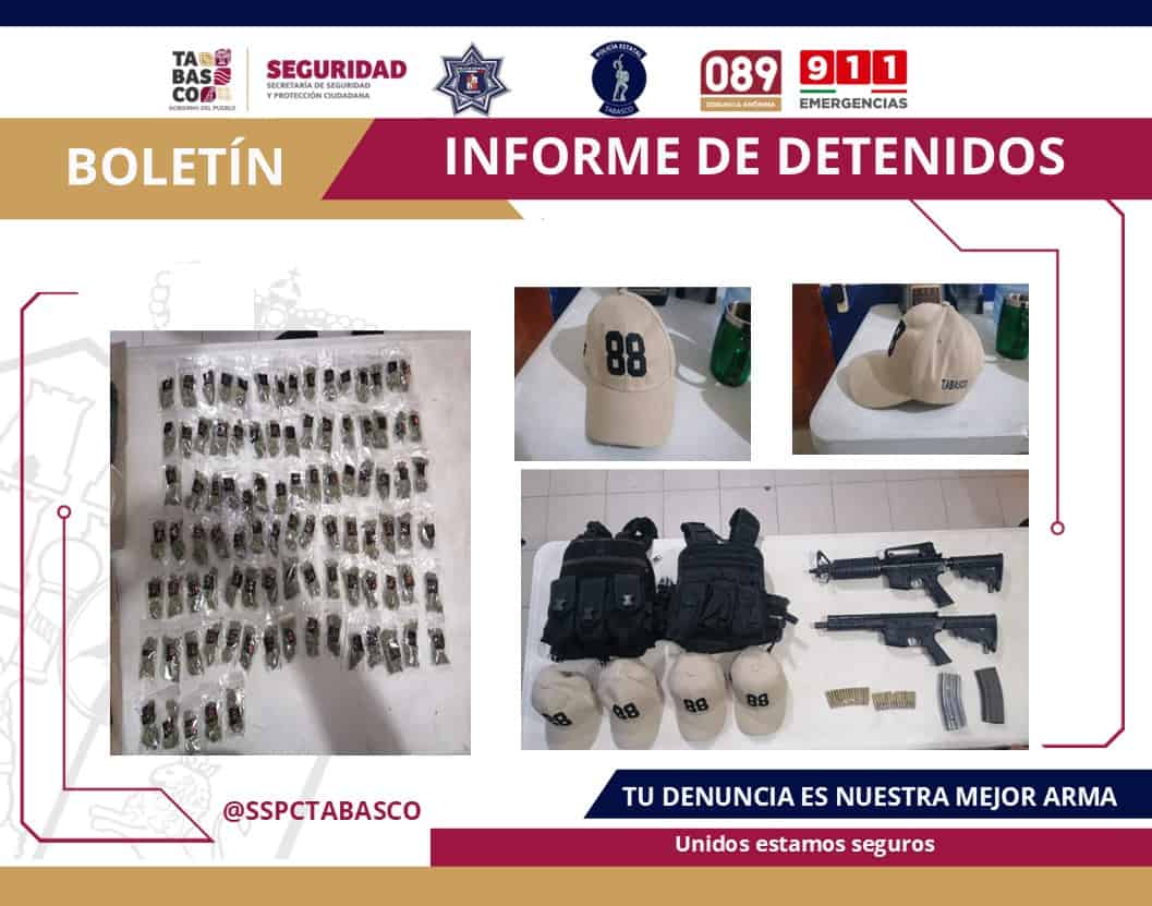 Como resultado del Plan de Contención del delito que implementa la Secretaría de Seguridad y Protección Ciudadana (SSPC) en coordinación con la Fuerza Interinstitucional de Reacción Táctica (FIRT) Olmeca, detuvieron a 4 masculinos como presuntos responsables de delitos contra la salud y portación de armas de fuego.