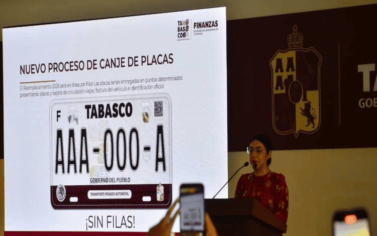 - La Secretaría de Administración y Finanzas del Estado afirmó que el costo del cambio de placas vehiculares en Tabasco, que se realizará del 5 de enero al 30 de abril de 2026, será el más bajo entre los estados del sureste del país.