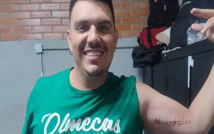 - En su brazo se le observa 19 puntadas y todo marcha viento en popa para que se recupere.