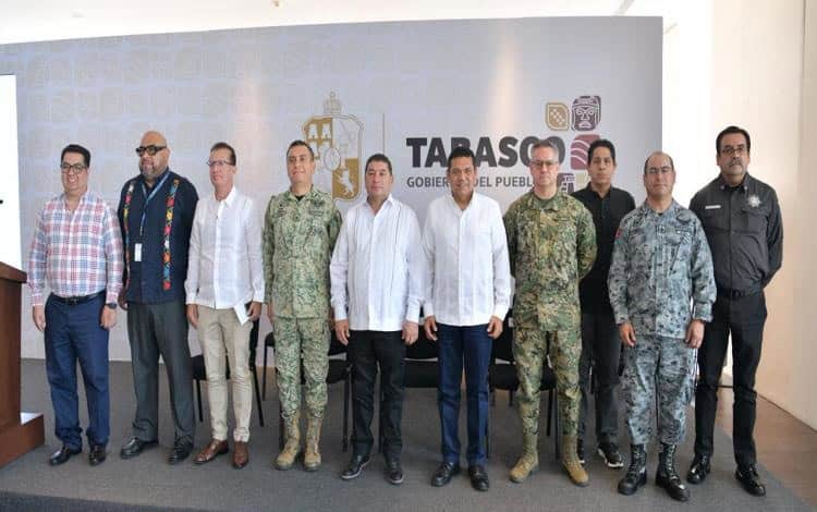 En compañía de los integrantes de la Mesa de Paz en Tabasco, May Rodríguez también dio la bienvenida al general brigadier de Guardia Nacional, Luis Andrés Gutiérrez Garnica, quien este martes tomará posesión formalmente como coordinador estatal de la corporación.