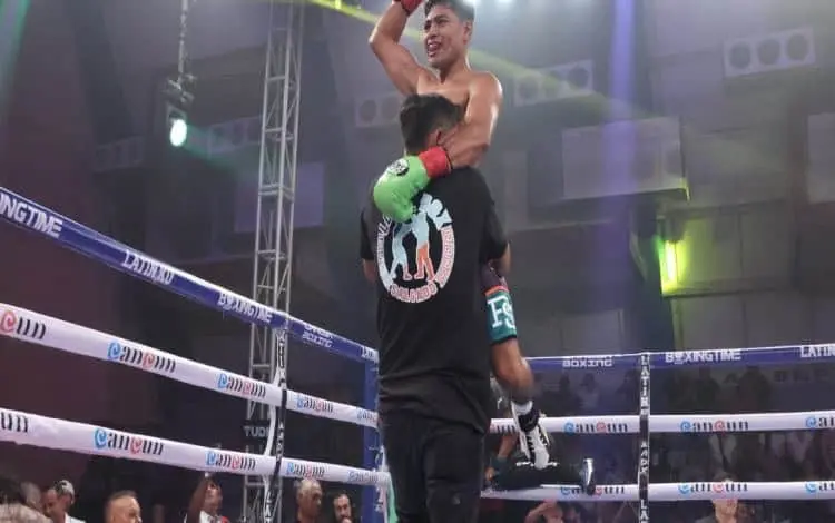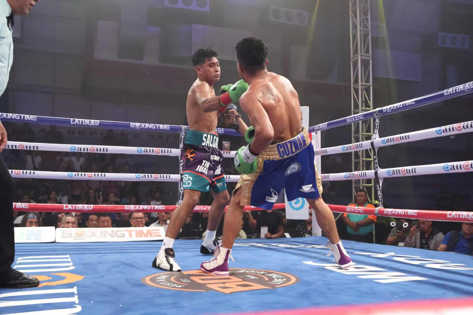 En el segundo round "Pichi" Salgado envió a la lona en dos ocasiones al tabasqueño que no pudo recuperarse y el réferi decidió finalizar el combate que acaparó reflectores como el más emocionante de la función Next Generation organizada por Cancún Boxing de Pepe Gómez.