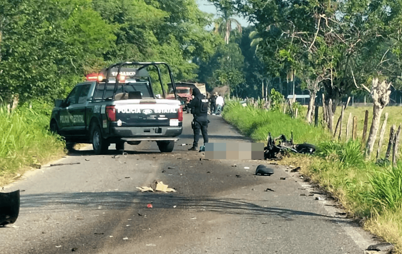 Personal del Sistema Estatal de Urgencias de Tabasco (SEUT), confirmaron el fallecimiento del motociclista tras sufrir múltiples fracturas.