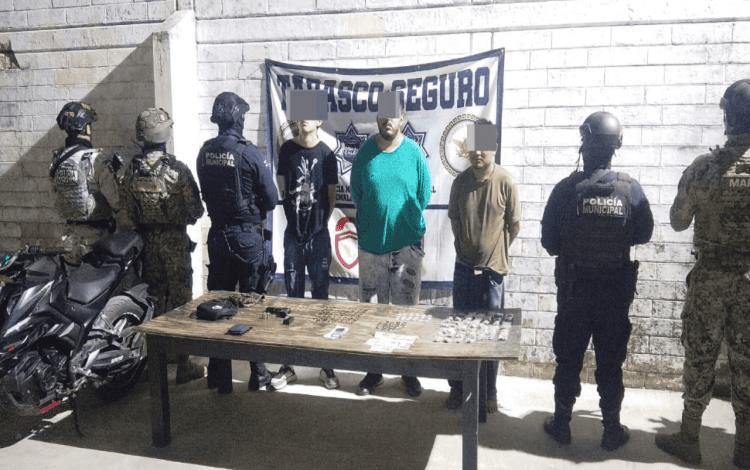 En un operativo conjunto, elementos de la Secretaría Armada de México MARINA y de la Fuerza Interinstitucional de Reacción Táctica (FIRT) "Olmeca Tiburón" lograron la detención de tres presuntos narcograperos en la Villa Chichicapa.