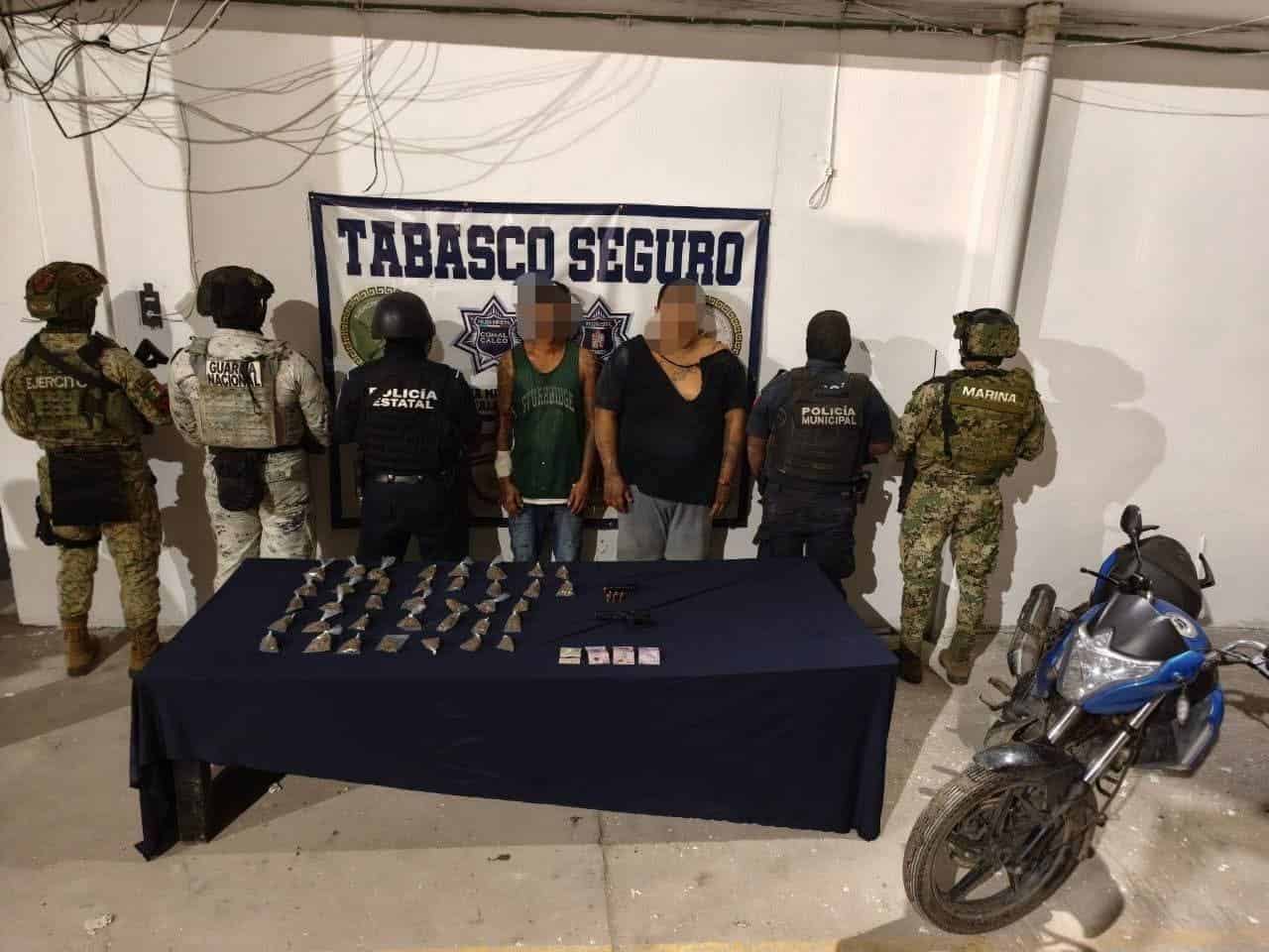 En la colonia El Limón fue detenido un hombre que portaba 19 dosis de hierba verde con características de la marihuana. En una segunda acción, dos sujetos que viajaban en motocicleta sin placas fueron interceptados y asegurados con 37 dosis de presunta marihuana, una pistola calibre 9 mm y seis cartuchos útiles.