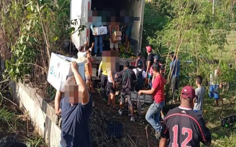 Al llegar las autoridades, un grupo de personas ya se encontraba en el lugar rapiñando la mercancía, que consistía en frutas y verduras como manzanas y plátanos, entre otros productos que presuntamente iban destinados a tiendas Bodega Aurrerá. La unidad quedó a varios metros fuera de la cinta asfáltica.