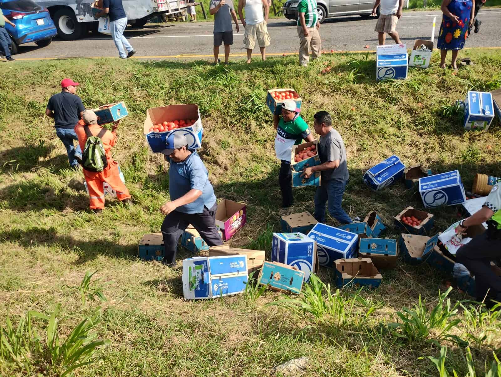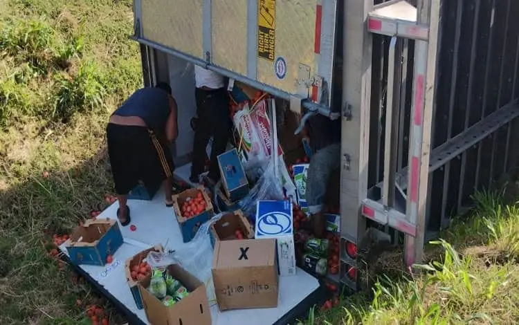- La unidad, que transportaba varias toneladas de frutas y verduras, fue violentada por personas que se acercaron al sitio, quienes tras abrir la caja del tráiler comenzaron a llevarse la mercancía.