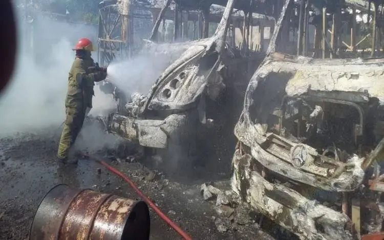 Posteriormente, elementos de Protección Civil del Estado de Tabasco se movilizaron y comenzaron a sofocar tanto el incendio de pastizal y en las instalaciones donde resguardan los autobuses.