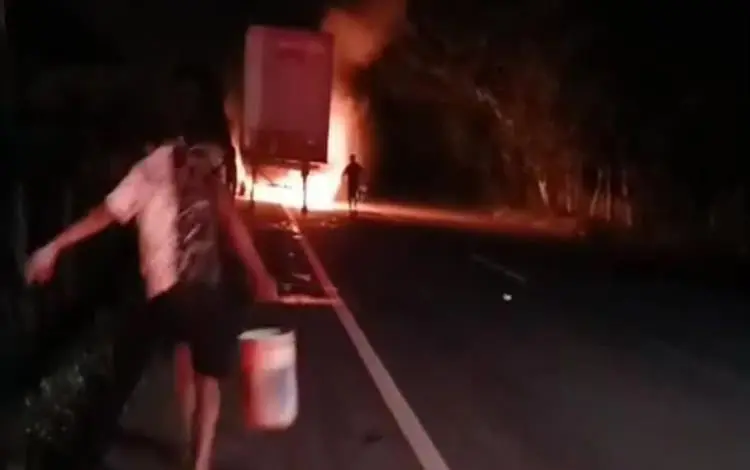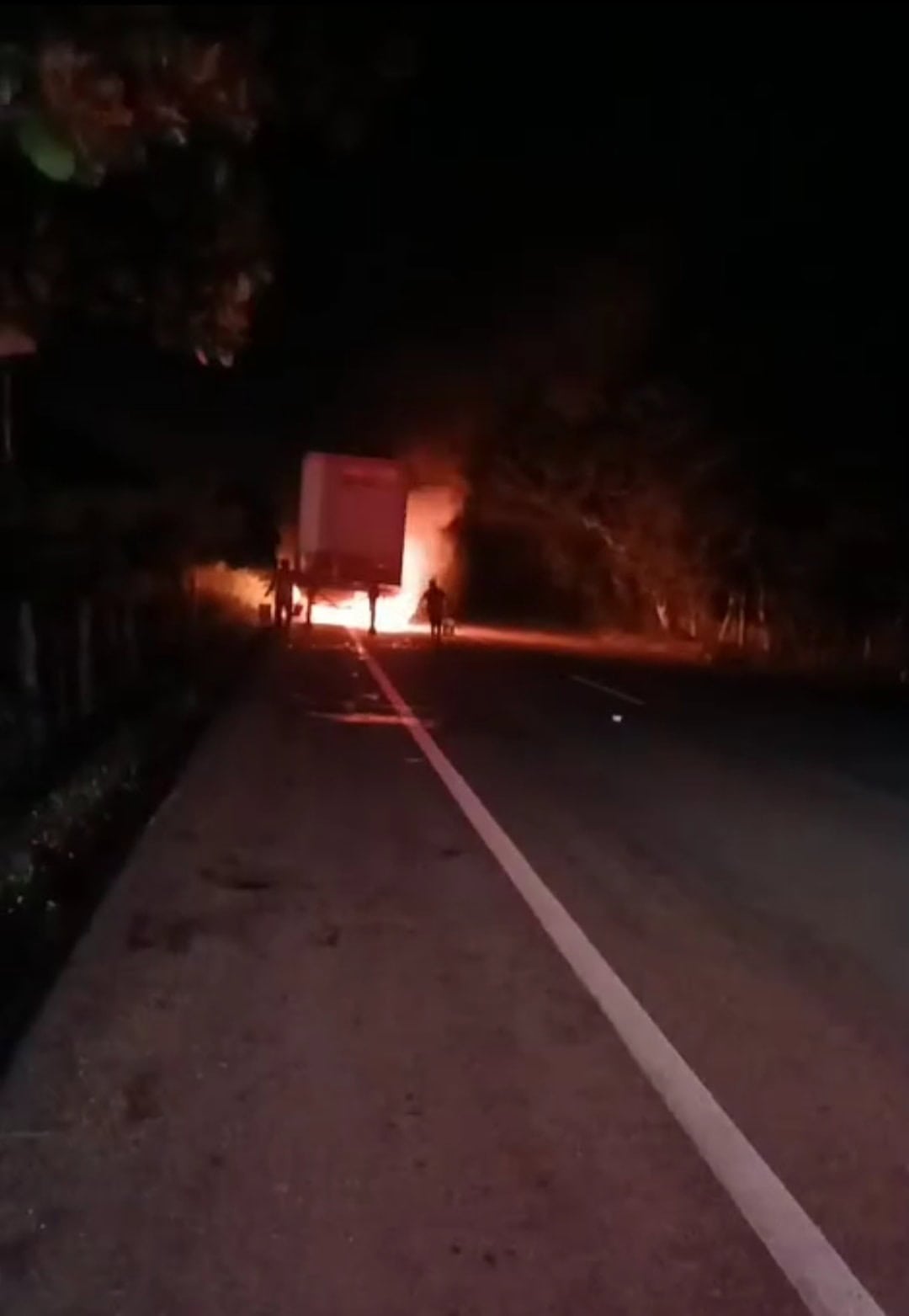 - Los hechos ocurrieron alrededor de las 2 de la madrugada, cuando el tráiler, cuyas características se ignoran, circulaba sobre la citada vía federal, pero al llegar a la altura de la comunidad antes mencionada, por razones desconocidas comenzó a quemarse.