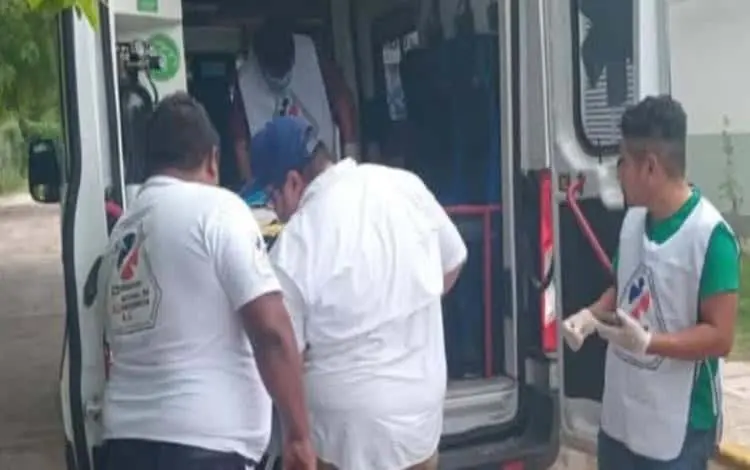 Paramédicos de la Villa Quetzalcoalt, trasladaron a fémina al centro de salud local de forma urgente al nosocomio de la Villa El Triunfo, debido a que perdió el sentido repentinamente cuando estaba en su vivienda; la mujer es diabética e hipertensa.