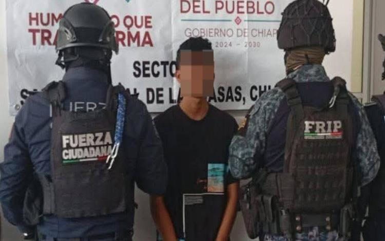 Derivado de recorridos de vigilancia, disuasión del delito y proximidad social en el kilómetro 113 San Cristóbal -Teopisca a la altura de la colonia San José Chatik, se logró la detención de Manuel "N" 23 años, abordo de un vehículo presunto miembro de un cártel delictivo que opera en los Altos de Chiapas.