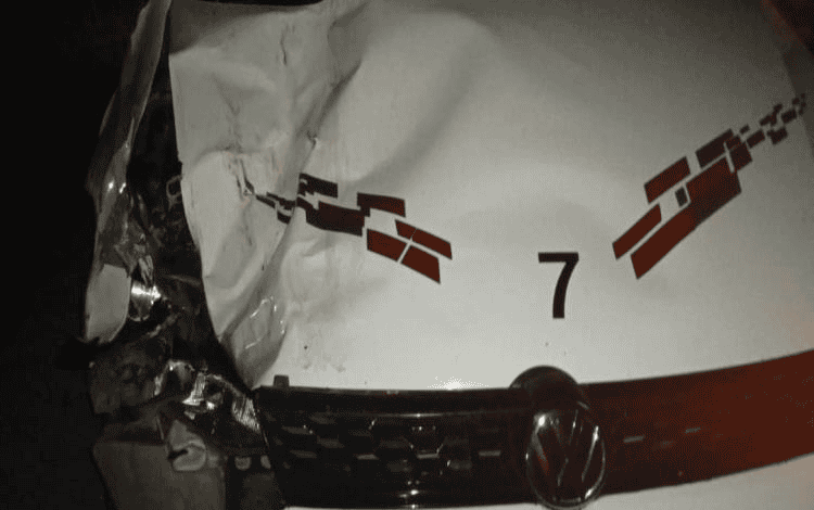De pronto, apareció un semoviente con medio cuerpo sobre la carretera, por lo que no le dio tiempo de frenar ni de rebasarlo debido a la fila de autos del carril opuesto, sobreviviendo el impacto.