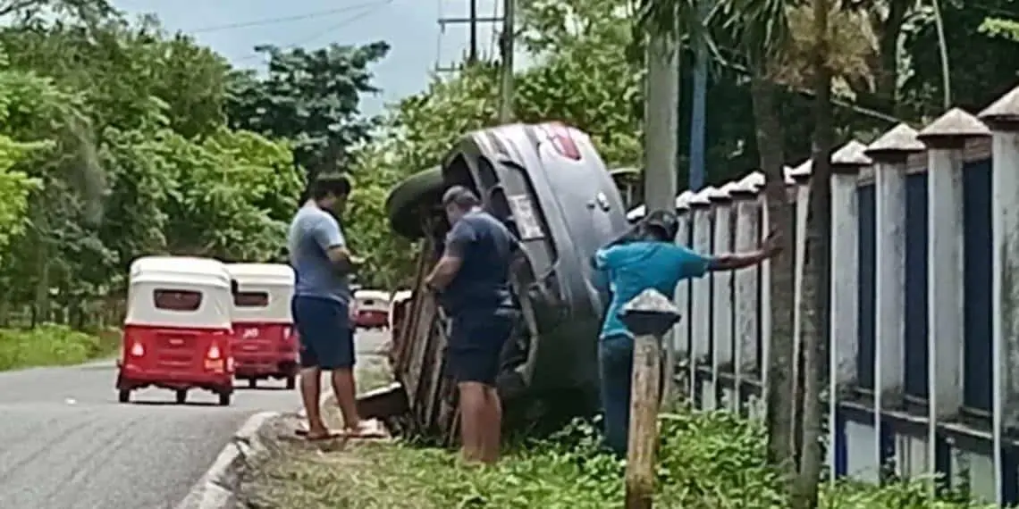 - Este percance se registró alrededor de las 10:00 horas de ayer viernes, sobre el tramo carretero antes descrito, cuando el conductor de un auto color gris, se desplazaba a bordo de su unidad con dirección al balneario Pico de Oro, pero como lo hacía a exceso de velocidad, perdió el control y se salió de la cinta de rodamiento, terminando volcado sobre su costado izquierdo dentro de una poza, a la altura de conocida granja de pollos.