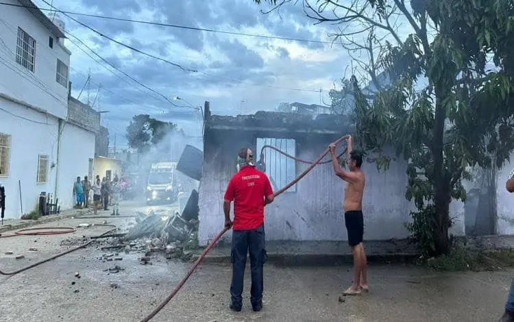 Residentes señalaron que lograron sacar a tiempo a la dueña de la vivienda doña Juana León Mendoza de 62 años, que estaba en una silla de ruedas, resultó ilesa pero muy triste por la terrible situación que está viviendo al quedarse prácticamente en la calle.
