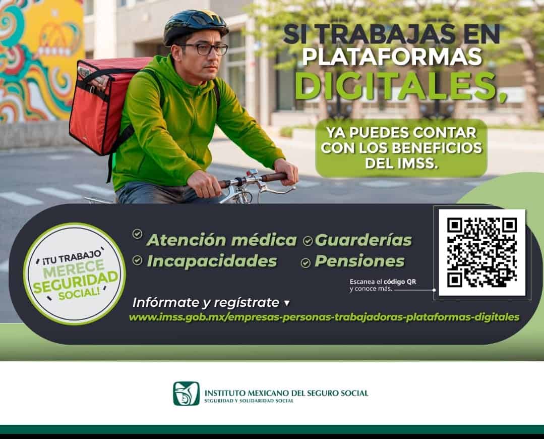 El Instituto Mexicano del Seguro Social (IMSS) en Tabasco informó que los repartidores y conductores de plataformas digitales en México tendrán acceso por primera vez seguridad social, sin perder la autonomía laboral que caracteriza al trabajo por aplicación.