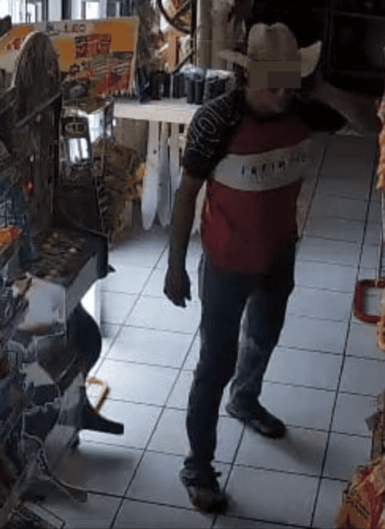 De acuerdo con el relato del empleado, el sujeto —de sombrero blanco, pantalón de mezclilla azul, playera con estampados negros y rojos, y lentes oscuros— recorrió los pasillos simulando buscar un producto. Segundos después, se acercó al mostrador, desenfundó un arma de fuego y amenazó al trabajador, exigiéndole el dinero de la caja registradora.