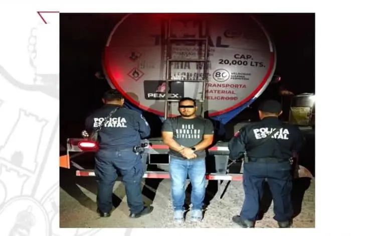 El presunto responsable fue identificado como Luis Yong "N" de 33 años, a quien le fue asegurado un vehículo marca Freightliner, modelo 2024, color blanco y 20 mil litros de Hidrocarburo (gasolina regular).