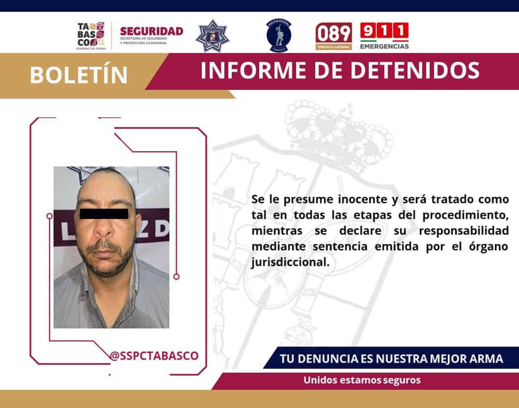 Se logró la detención de un masculino presuntamente originario de Medellín, Colombia, en la calle Revolución de la colonia Tamulté de las Barrancas, del municipio de Centro.