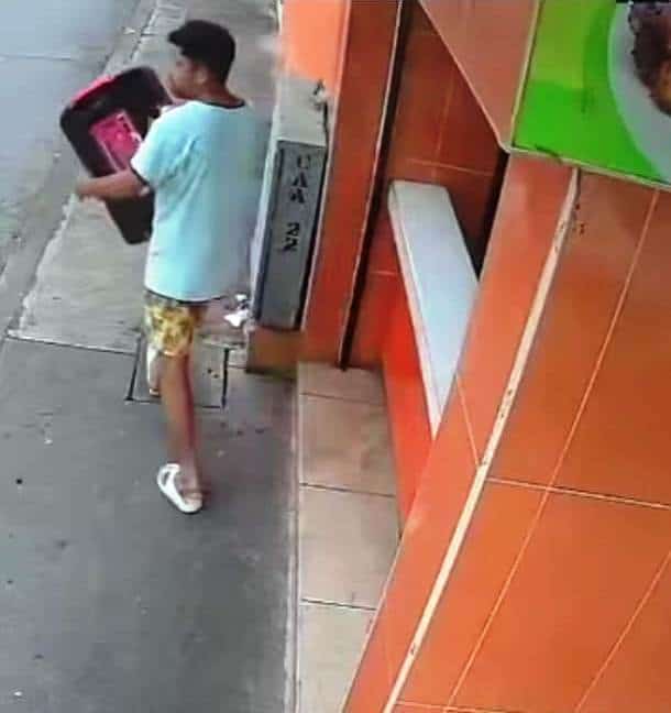 En las imágenes se observa cómo un masculino, al notar que los empleados se encontraban ocupados atendiendo a la clientela, aprovecha la distracción para sustraer una bocina que se encontraba en el interior del negocio.