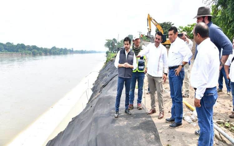 Seguidamente, acudieron a la colonia Gaviotas Norte de Villahermosa, donde supervisaron el bordo de protección en la margen derecha del río Grijalva.