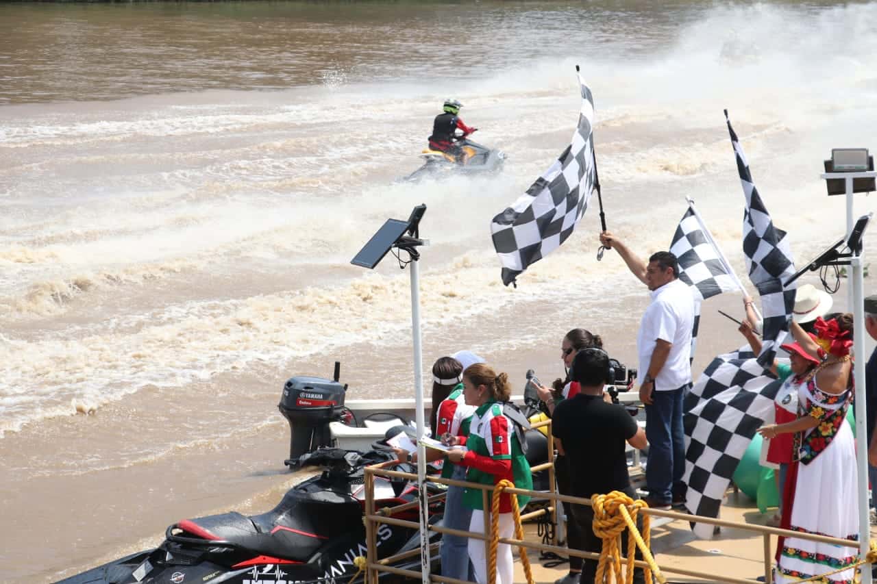 - En las motos acuáticas en la F1 Oswaldo Cervera se subió a lo más alto del pódium, le siguieron Erwin Escalante y Ángel Cházaro.