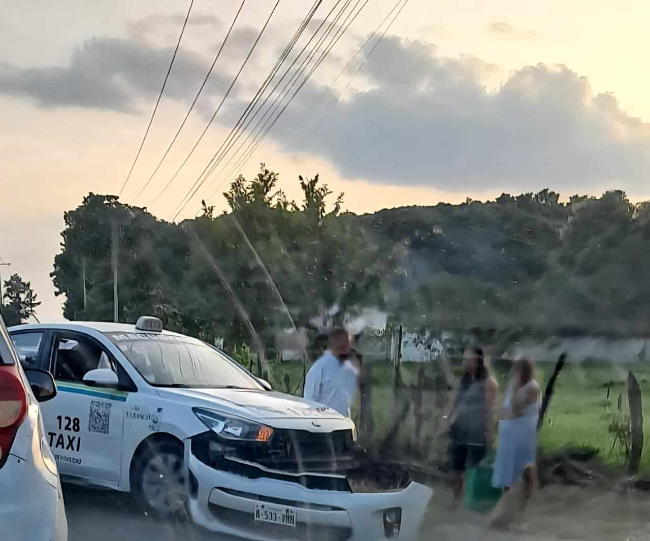 El percance ocurrió poco antes de las 18 horas a la altura del tramo de Los Ateos, autoridades locales atendieron la situación en el que habitantes dijeron que el conductor del taxi con el número económico 128 al momento de intentar rebasar; impactó de frente a los motociclistas.