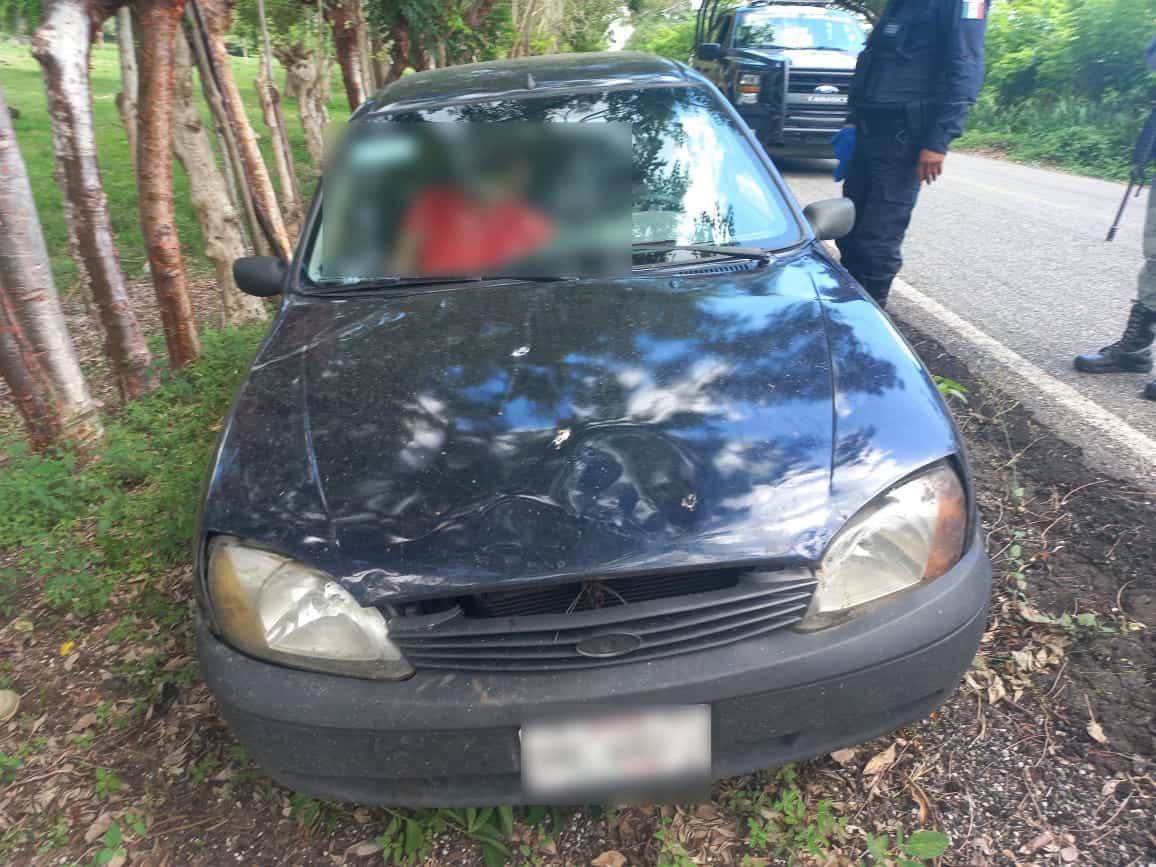 En el lugar de los hechos quedó un vehículo Ford fiesta azul con placas DNE-643-J del vecino Estado de Chiapas, en el asiento del copiloto se encontraba el cuerpo sin vida de un masculino que vestía playera de color rojo.