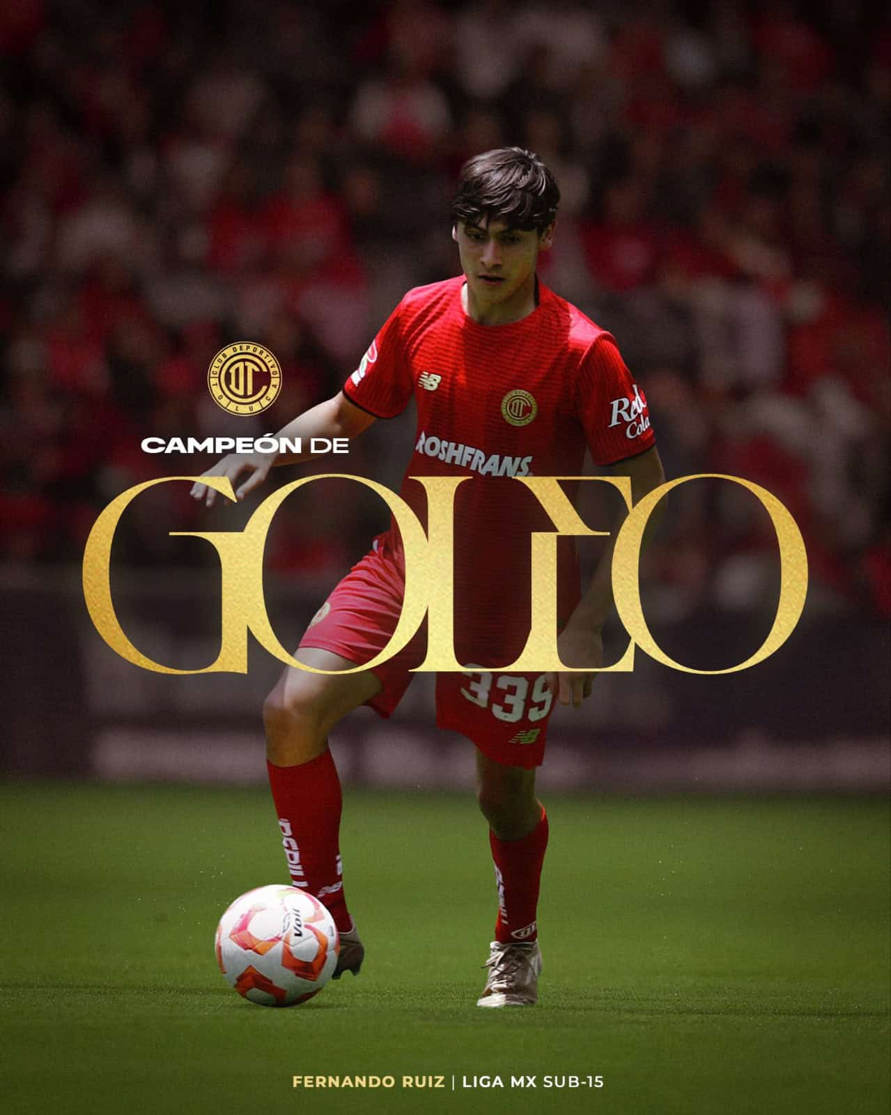 El delantero tabasqueño Fernando Ruiz Campos del Toluca se consagró como campeón de goleo en la Liga MX Sub15.