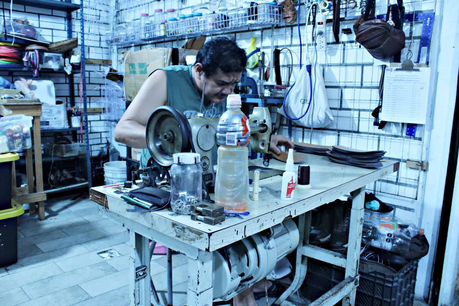 - Ellos le enseñaron a manejar todo tipo de piel, el curtido, el calibrado necesario para la hechura de vainas (usadas por los campesinos como funda para sus machetes), los cortes para los aperos, bolsas, billeteras y una gran variedad de artículos que uno puede ver en su local ubicado en la segunda planta de mercado José María Pino Suárez nombrado Talabartería La Herradura, donde don Juan José está la mayor parte del tiempo sentado y concentrado trabajando en su máquina de coser 3117 que es más antigua que la que usa su hijo Pepe Moreno, que es una máquina alemana fabricada en los años de la Segunda Guerra Mundial.