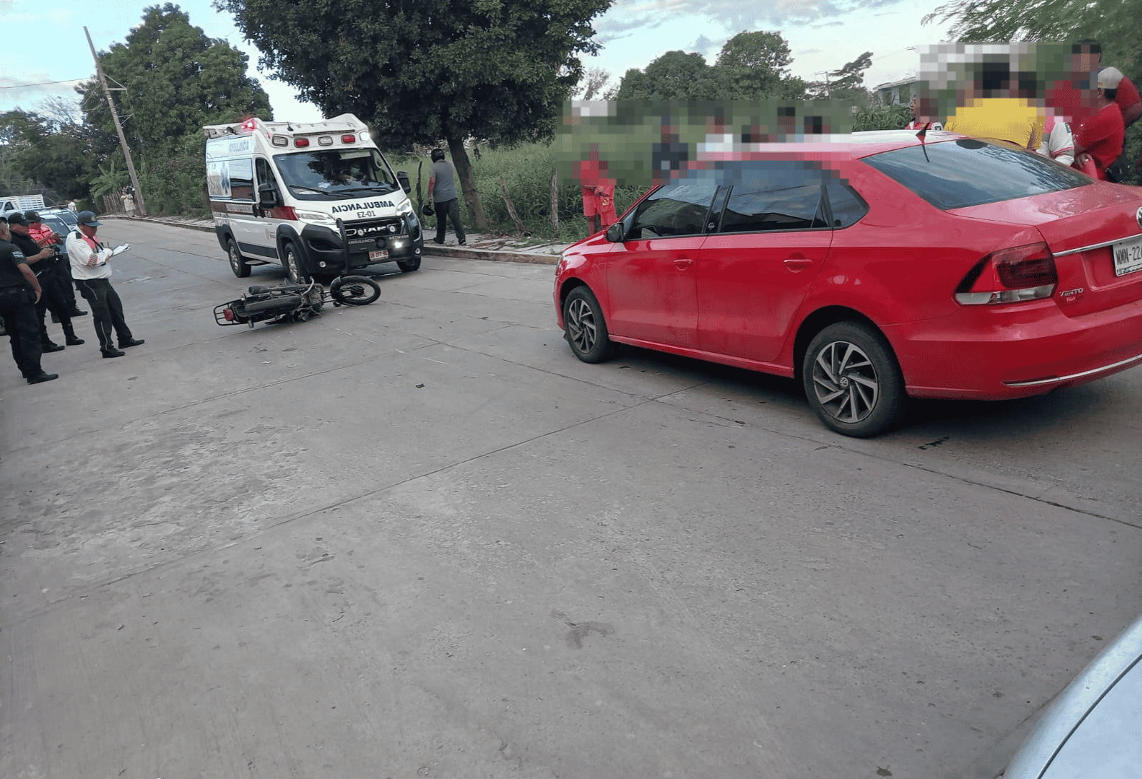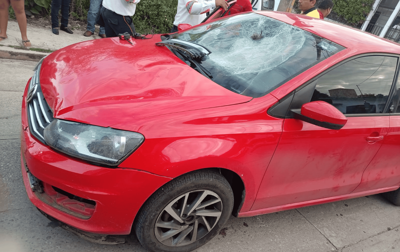 De acuerdo con los primeros reportes, el percance ocurrió debido a que el chofer del auto Volkswagen tipo Vento de color rojo conducía distraído, lo que provocó la colisión con un motociclista que traía la preferencia.