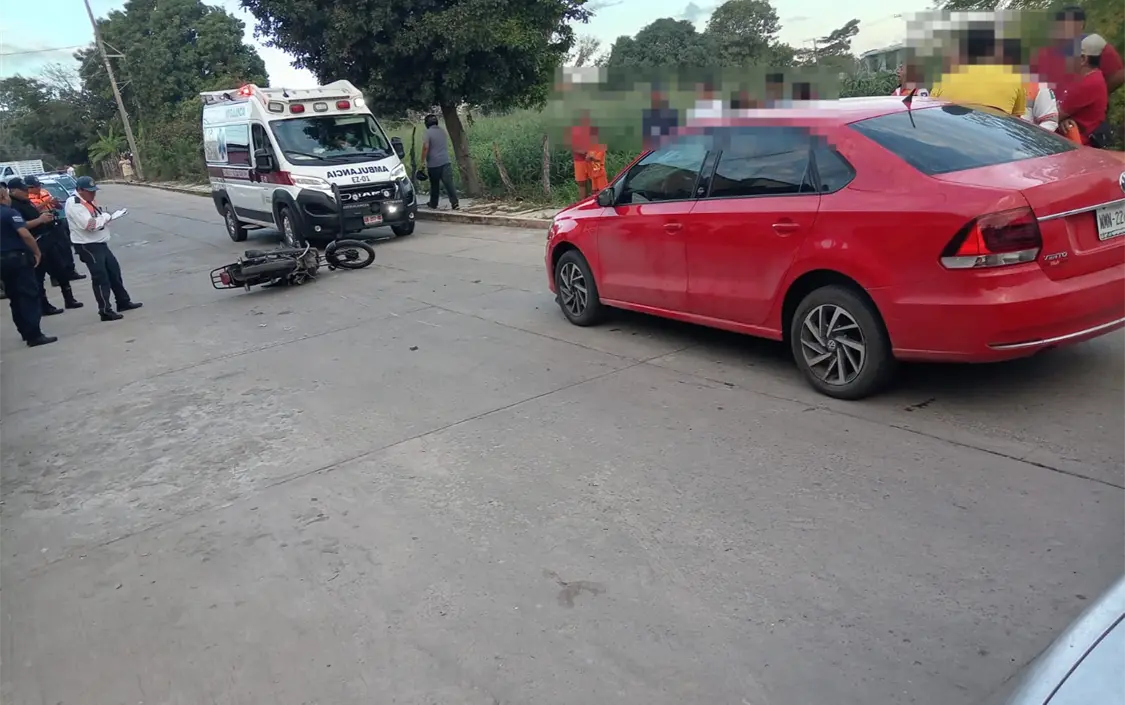 Un accidente en la colonia Santa Isabel deja a un motociclista herido tras chocar con un auto en la calle Prolongación Matamoros