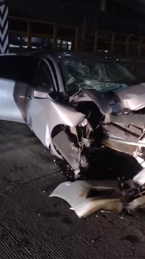 Más tarde personal de los servicios periciales se presentaron en el lugar para realizar las diligencias; a simple vista el vehículo el auto Nissan Versa color gris con placas WTS517B de Tabasco había colisionado con el muro de hierro.