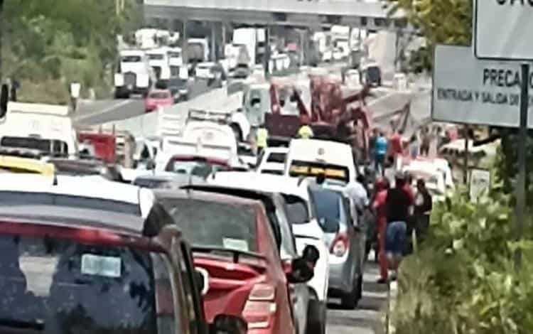 La tarde del sábado se registró un grave congestionamiento en la carretera federal Villahermosa - Macuspana, luego de que un tractocamión doble remolque sufriera un accidente a la altura del kilómetro 16.