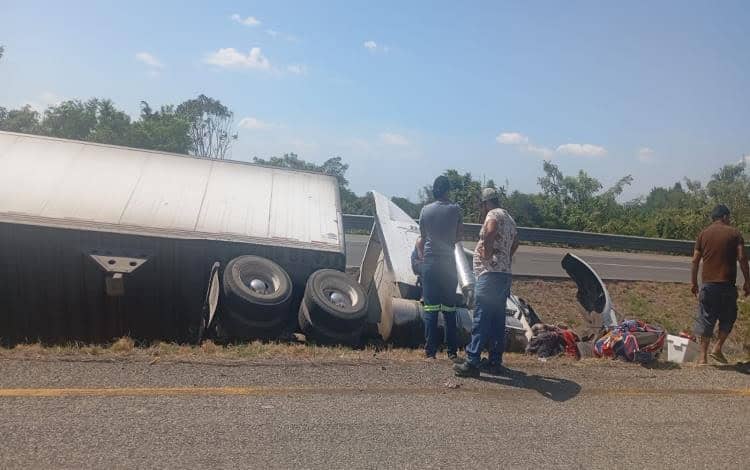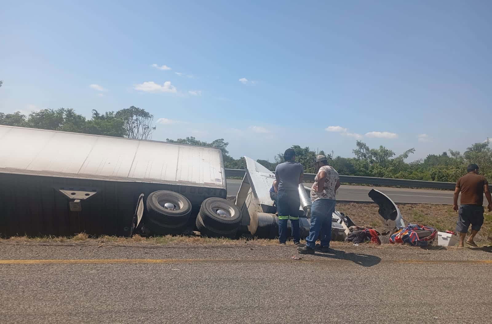 La tarde del pasado lunes, sobre el libramiento de Villahermosa en el tramo que viene de Nacajuca hacía Frontera, un accidente vial ocurrió en el kilómetro 14 donde el conductor de un tráiler perdió el control y terminó saliéndose de la cinta asfáltica.