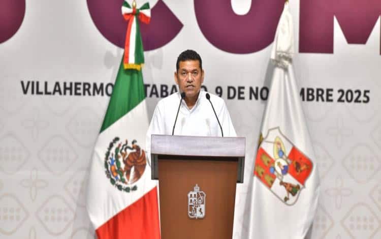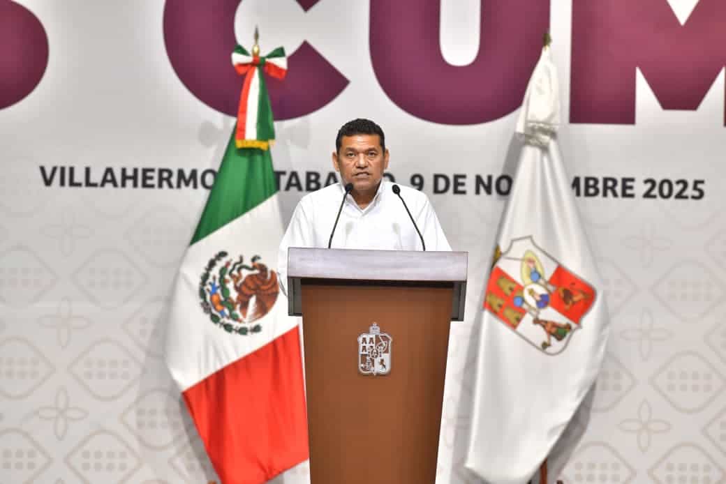 Al asistir en representación de la Presidenta Claudia Sheinbaum Pardo, el subsecretario de Industria y Comercio de la Secretaría de Economía, Vidal Llerenas Morales, expresó sus felicitaciones al gobernador tabasqueño.