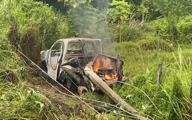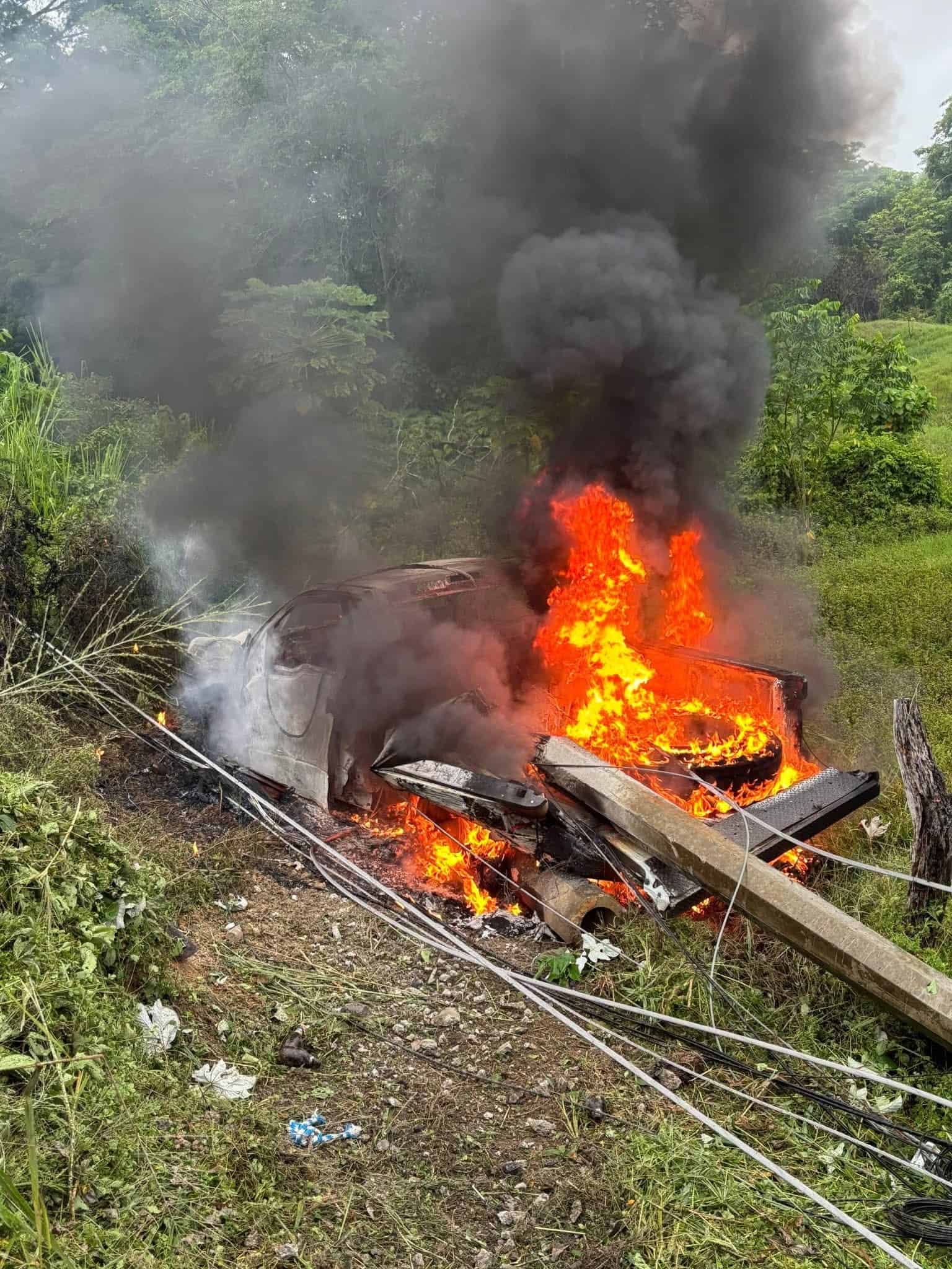En el kilómetro 22 de la carretera federal Villahermosa - Frontera pasando la Villa Macultepec, el conductor de una camioneta sufrió un accidente: se salió de la carretera y colisionó con un poste de la CFE, derribó dos más y la unidad se incendió en minutos, afortunadamente no hubo víctimas.