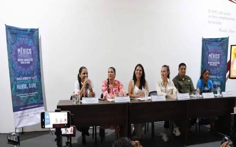 - En conferencia de prensa encabezado por Katia Ornelas Gil y María Eugenia Culebro secretarias de turismo de Tabasco y Chiapas respectivamente, así como el presidente municipal de Palenque Jorge Cabrera, la titular del deporte chiapaneco Bárbara Altúzar, la directora general de México Imparable Mirna De la Cruz y la atleta rarámuri María Lorena Ramírez dieron a conocer todos los detalles del certamen a realizarse el 14 de septiembre en Palenque.