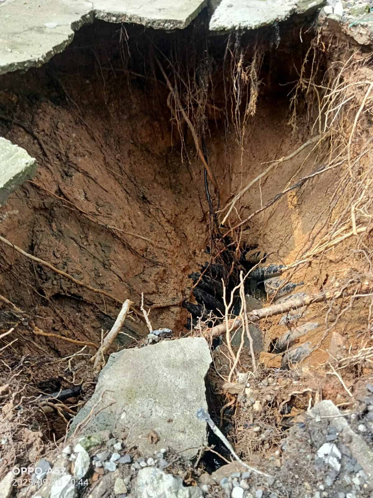 - El tremendo hueco es una trampa segura para las personas y automovilistas que transitan por la zona principalmente por la noche, toda vez que no cuenta con ninguna cinta que diga peligro, sin embargo, a como pasan los días este se va extendiendo y cuenta con más de un metro de profundidad e igual de ancho, señalaron los denunciantes quienes piden el apoyo de las autoridades correspondientes.