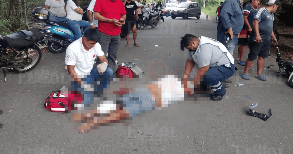 Un trágico choque entre motociclistas en Centla termina con la muerte de uno de los conductores y deja al otro en estado grave