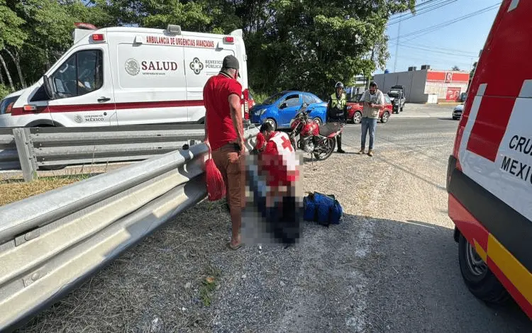 Un motociclista terminó con una fractura en la pierna derecha en un accidente que sufrió en su unidad cuando un trailero se le cerró en el retorno proveniente de la colonia Las Gaviotas hacia la carretera Villahermosa - Teapa.