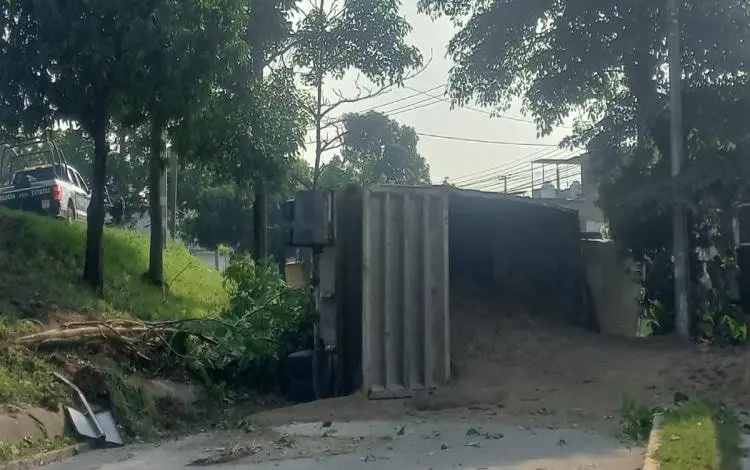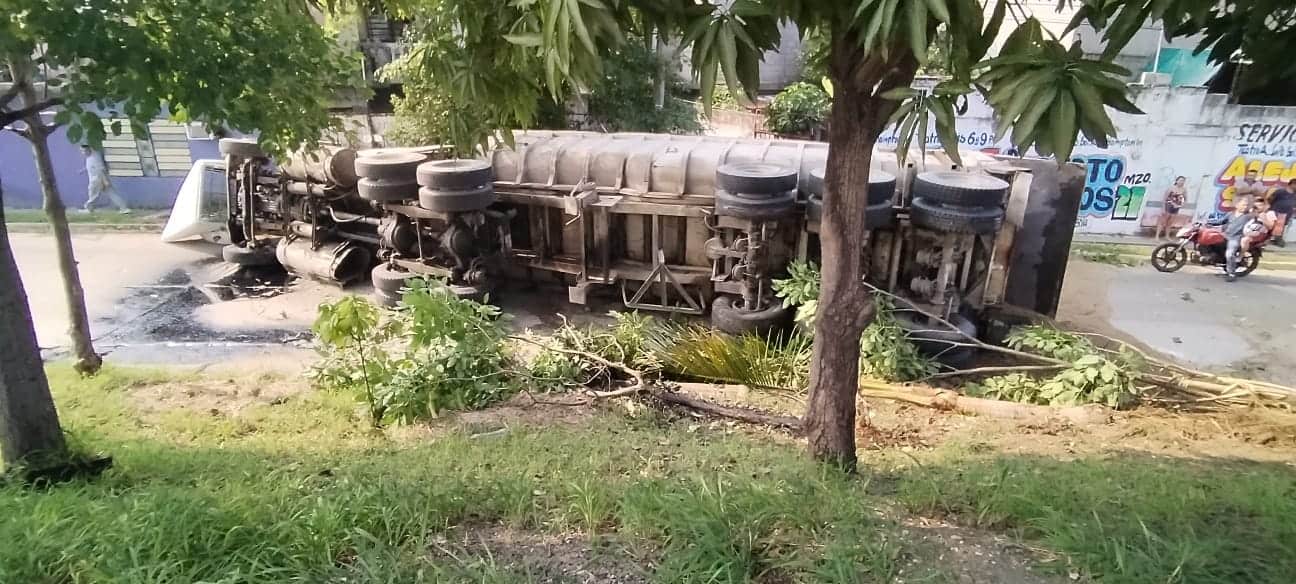 La volcadura de un volteo la tarde de ayer sobre la Avenida Luis Donaldo Colosio Murrieta a la altura de la colonia Gaviotas Norte, provocó un caos vial; el chofer perdió el control.